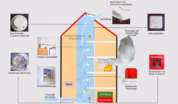Auf den ersten Blick ist es nicht einfach, seine Bedeutung richtig einzuschätzen, denn mit einen Rauch- und Wärmeabzug werden weder entsprechende Brände gemeldet noch bekämpft. Die RWE- Anlage ist eine passive Einrichtung, aber die Brandanalysen der letzten Jahre belegen: Für 80% der Todesopfer und 90% der Sachschäden ist der Brandrauch verantwortlich, nicht das Feuer.
